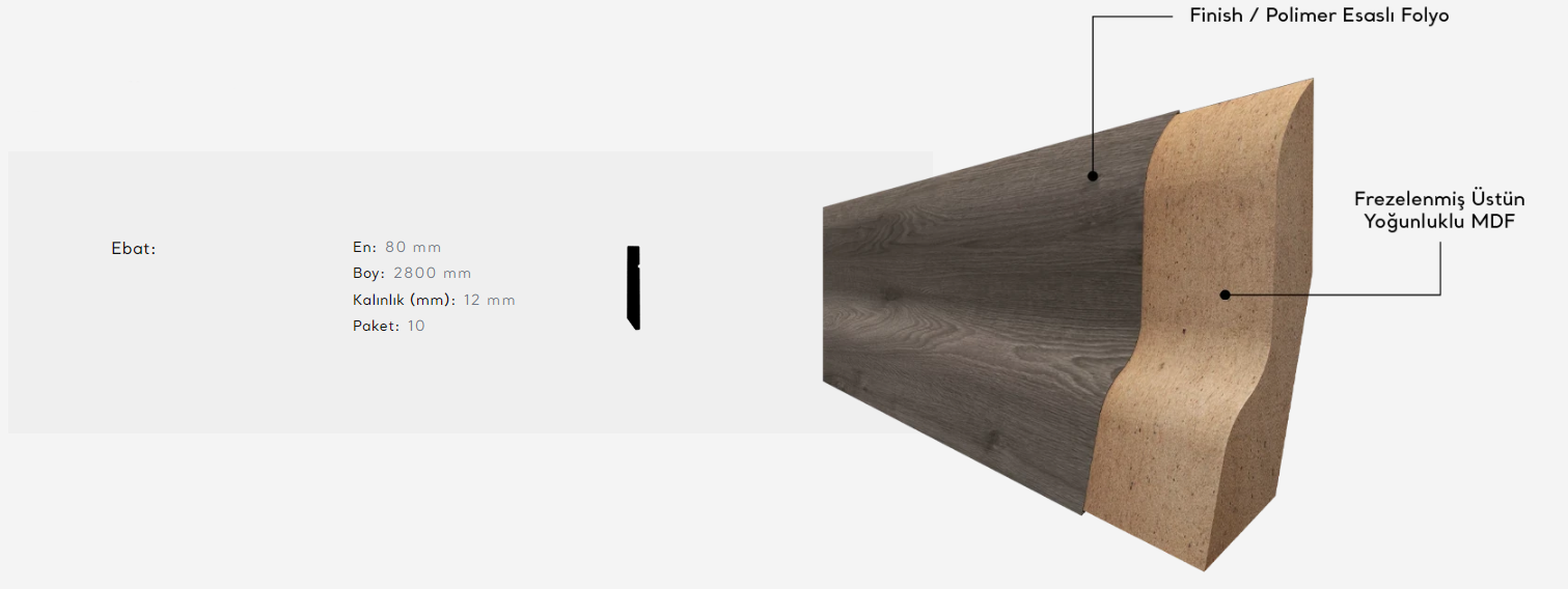 SPR-9028 Süpürgelik Modeli ile mekanlarınızda zarif ve modern bir dönüşüm sağlayın. Bu model, 12 mm’lik ince tasarımı ile modern estetik anlayışını vurgularken, dayanıklı yapısı sayesinde uzun yıllar boyunca güvenle kullanılabilir. SPR-9028, her türlü iç mekan dekorasyonu ile uyum sağlayacak geniş renk ve desen seçenekleri sunarak hem eviniz hem de iş yeriniz için mükemmel bir tercih olur.